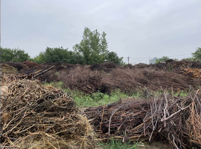 現(xiàn)場堆集了大量樹枝、藤蔓