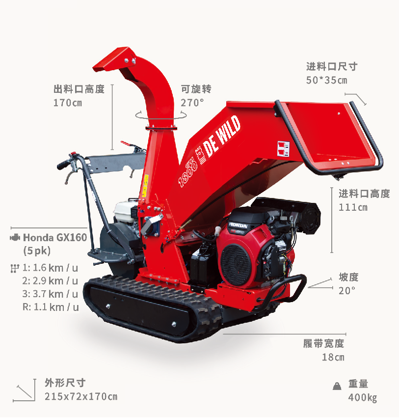 我們很榮幸地為大家介紹威而德家族又一款履帶自走碎枝機(jī)GTS1800R, 搭載本田GX630雙缸汽油發(fā)動(dòng)機(jī),大馬力動(dòng)力更強(qiáng)勁??蓪⒅睆?2cm的新鮮樹枝卷入,即刻變廢枝為木屑,高效處理枝條秸稈等綠色廢棄物并實(shí)現(xiàn)循環(huán)利用。
