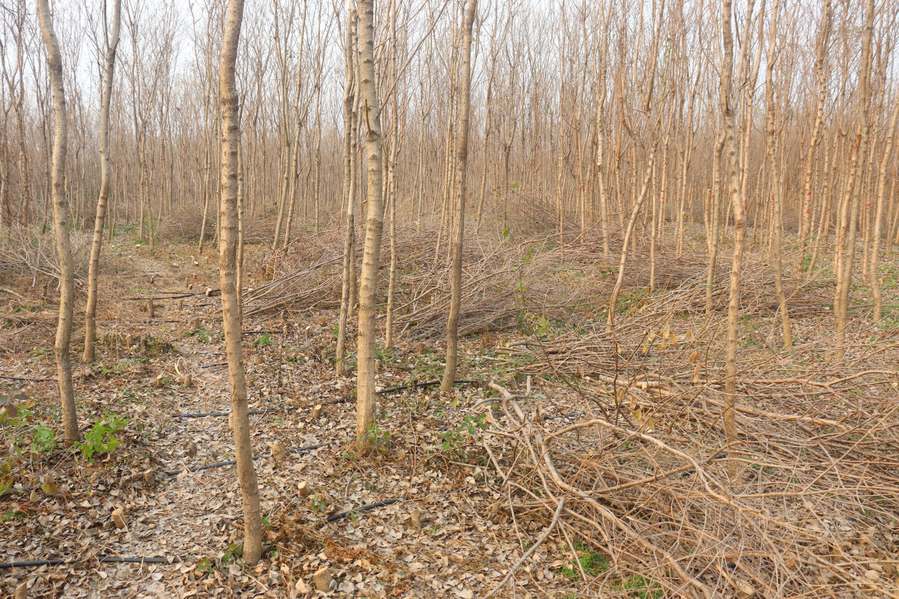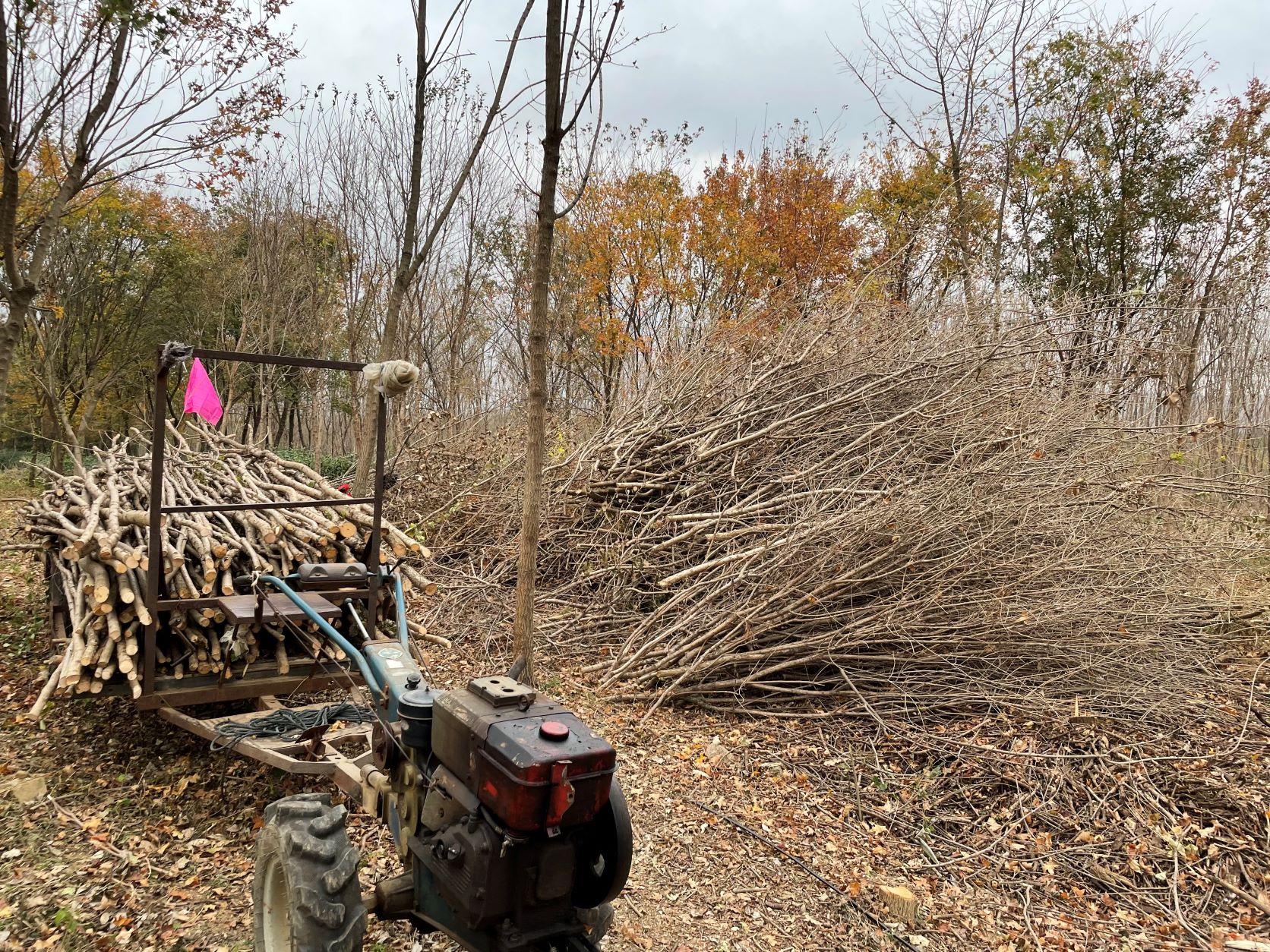 現(xiàn)場(chǎng)堆放著大量亟待粉碎處理的枝條,不遠(yuǎn)處的樹(shù)林里還有很多待收集的樹(shù)枝散落各處。