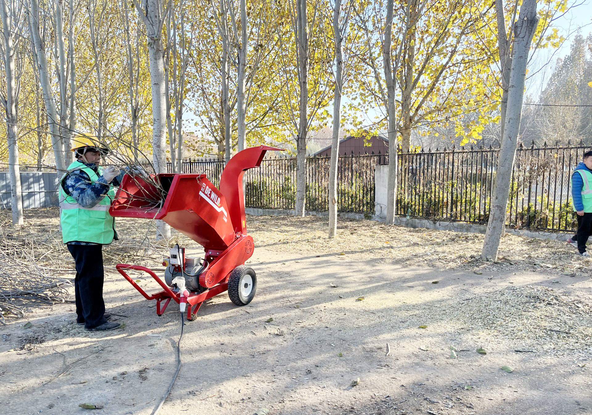 在位于德城區(qū)岔河?xùn)|大道的園林綠化垃圾處置轉(zhuǎn)運(yùn)站,不時(shí)傳出“卡啦啦”的響聲。2名園林工人將一根根修剪下來的枝條,投入小型枝葉粉碎機(jī)中,很快,從機(jī)器的另一端,細(xì)碎的木屑慢慢涌出。