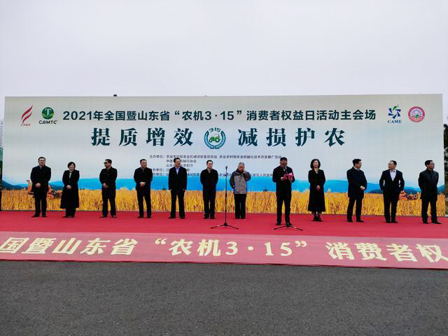 3月15日,2021年全國暨山東省“農(nóng)機(jī)3·15”消費(fèi)者權(quán)益日活動在山東省日照市隆重舉行。